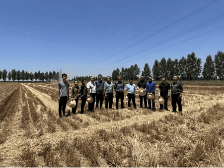 6月15日陜西省農(nóng)業(yè)機械研究所有限公司相關(guān)技術(shù)人員應(yīng)陜西省農(nóng)業(yè)機械產(chǎn)業(yè)技術(shù)體系邀請,赴寶雞市陳倉區(qū)小麥寬幅播種試驗示范基地參加了現(xiàn)場實收測產(chǎn)和研討會。