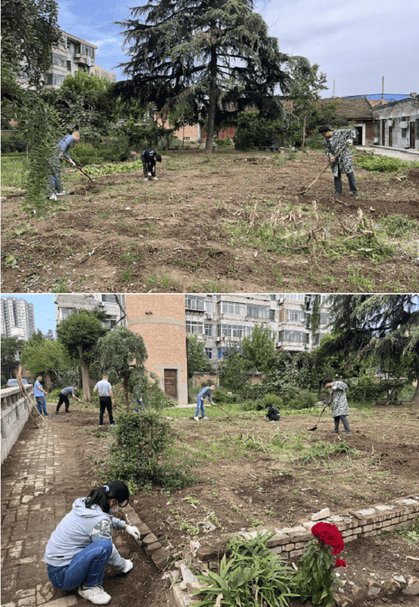 活動中,黨員職工紛紛拿起鋤頭、鐵鍬等工具,撿拾、清理三臺科研試驗田兩邊的垃圾、雜草,并對單身宿舍屋前雜草進(jìn)行了清理,經(jīng)過2個多小時的分工協(xié)作,環(huán)境衛(wèi)生煥然一新。