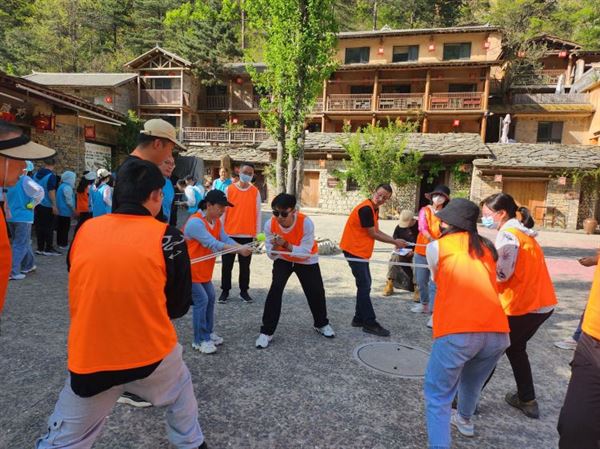 活動以分組競賽形式開展,全體人員分4組,進(jìn)行了“最強戰(zhàn)隊”、“闖關(guān)大作戰(zhàn)”(環(huán)游世界、縱橫千里、彩球飛舞)、田間一條龍、“車輪滾滾”、趣味拔河等一個個極具挑戰(zhàn)的