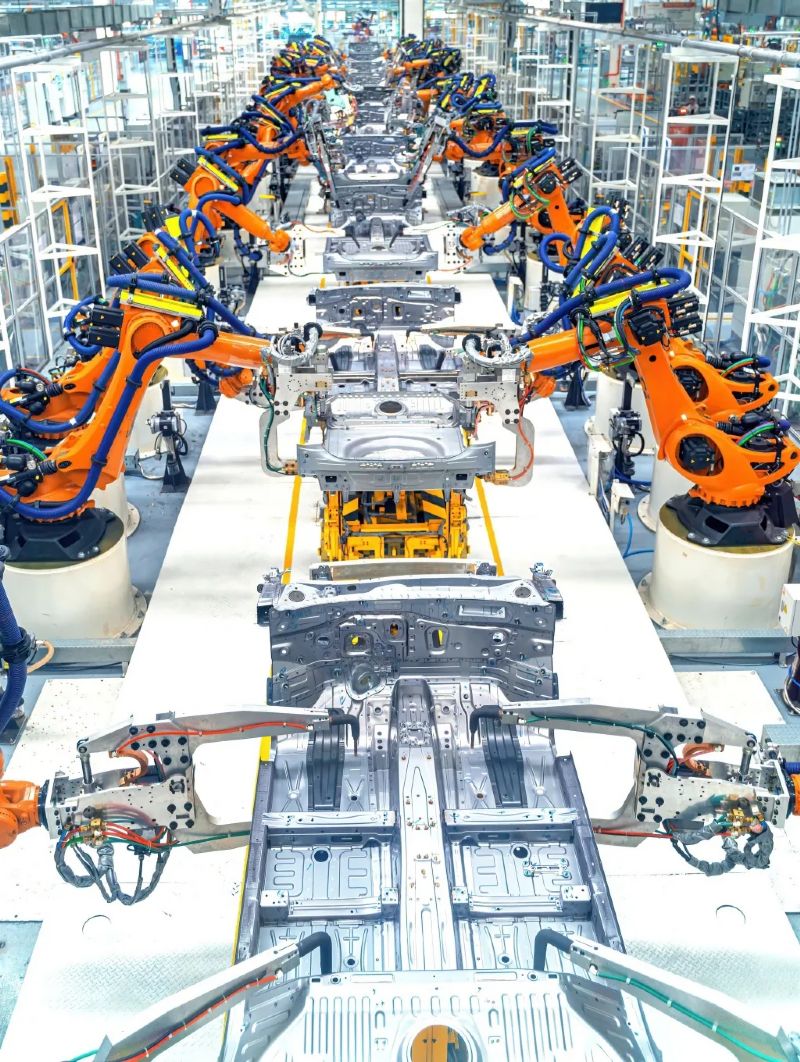 現(xiàn)代化的汽車(chē)制造廠(chǎng)焊接裝配線(xiàn)。(圖/視覺(jué)中國(guó))