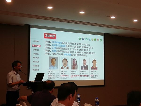 會上,江蘇大學、農(nóng)業(yè)部南京農(nóng)業(yè)機械化研究所、中國農(nóng)業(yè)機械化科學研究院、陜西省農(nóng)業(yè)機械化研究所、浙江大學等5家項目課題承擔單位負責人分別就各自負責的課題1:葉菜類蔬菜低損清潔關(guān)鍵技術(shù)及其數(shù)控裝備研發(fā)、課題2:塊根塊莖類蔬菜低損清潔關(guān)鍵技術(shù)及其數(shù)控裝備研發(fā)、課題3:山茶高效低損脫蒲除雜關(guān)鍵技術(shù)及其數(shù)控裝備研發(fā)、課題4:核桃高效低損去皮脫殼除雜關(guān)鍵技術(shù)及其數(shù)控裝備研發(fā)、課題5:農(nóng)特產(chǎn)品高效物理殺菌技術(shù)與數(shù)控裝備研發(fā),匯報了研究內(nèi)容與實施方案。