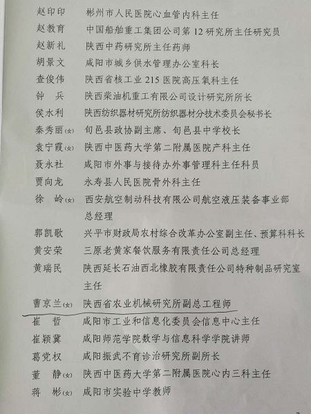 陜西省農(nóng)業(yè)機(jī)械研究所副總工程師、質(zhì)檢總站副站長、高級(jí)工程師曹京蘭同志榮獲咸陽市首屆“最美同心人”榮譽(yù)稱號(hào)。