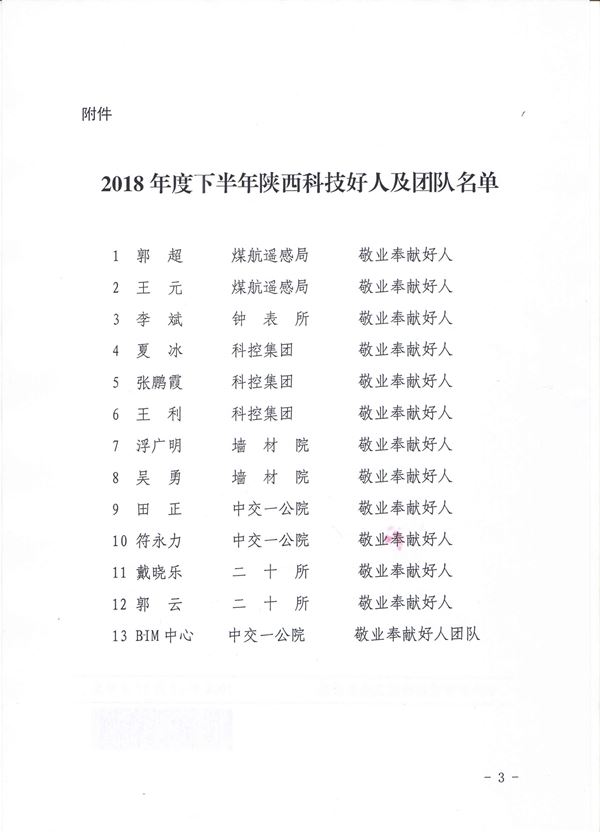 根據(jù)省委科技工委《關(guān)于公布2018年度下半年陜西科技好人評(píng)議結(jié)果的通知》的(陜科工辦發(fā)[2018]93號(hào))文件通知,我所農(nóng)業(yè)工程研究室張鵬霞同志被省委科技工委評(píng)為下半年“陜西科技好人”。