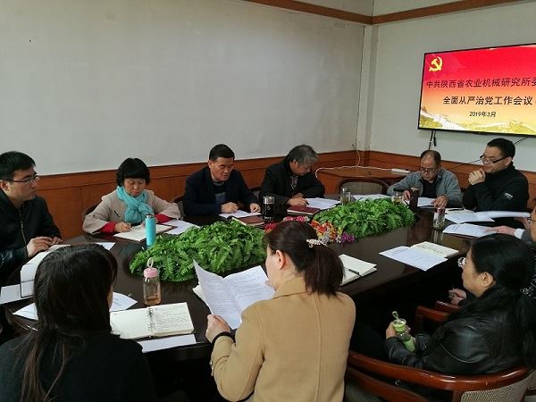 3月26日上午,陜西省農(nóng)業(yè)機械研究所黨委召開2019年全面從嚴(yán)治黨工作會議,會議由黨委委員、黨群工作部主任馬新利主持,黨委書記、所長賀功民出席并講話,所領(lǐng)導(dǎo)班子成員、黨支部書記、中層干部、黨支部委員參加了會議。